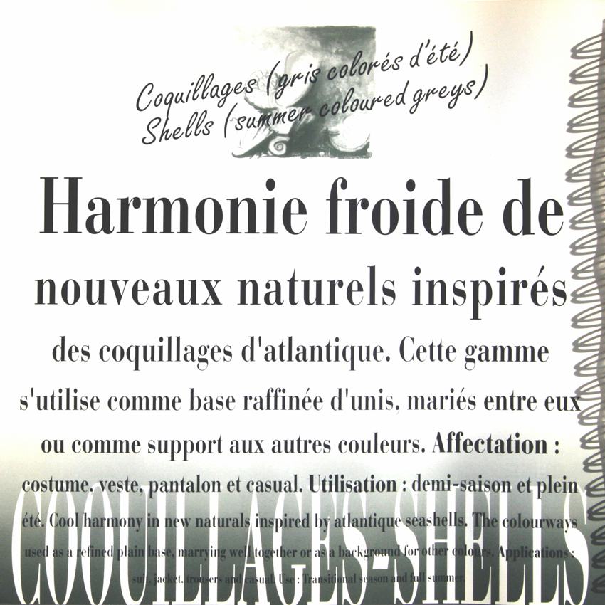 GAMME COULEURS HOMMEPrintemps ETE 1996Laurent Le Tadicpour Yvon Bernard PFD ModomPARTAGER COQUILLAGESharmonie froidenouveaux naturels