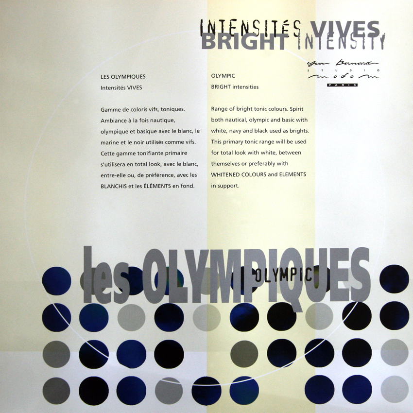 GAMME COULEURS HOMMEPrintemps ETE 2000Laurent Le Tadicpour Yvon Bernard PFD ModomPARTAGER LES OLYMPIQUESambiance nautiquegamme primaire