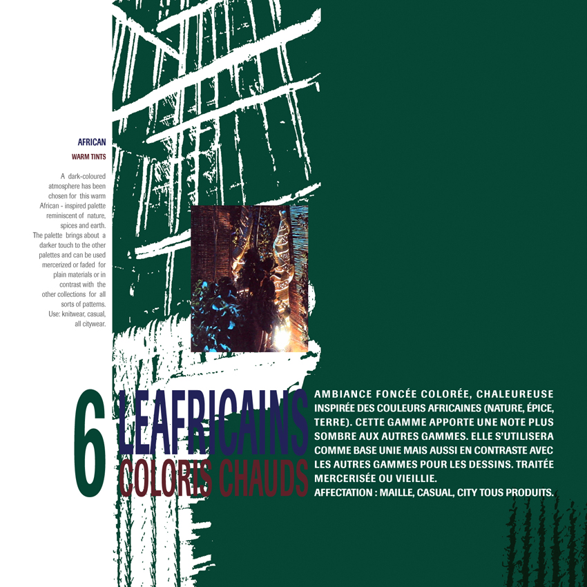GAMME COULEURS HOMMEPrintemps ETE 2005Laurent Le Tadicpour Yvon Bernard PFD ModomPARTAGER LES AFRICAINScoloris chauds