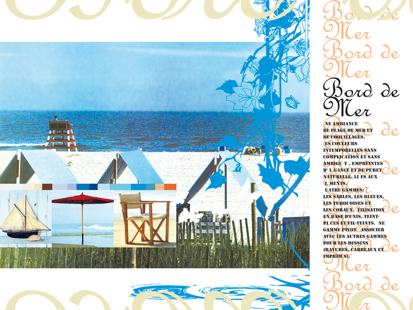 GAMME COULEURS HOMMEPrintemps ETE 2007Laurent Le Tadicpour Yvon Bernard PFD ModomPARTAGER BORD DE MERles sablesles bleusles turquoisesles coraux